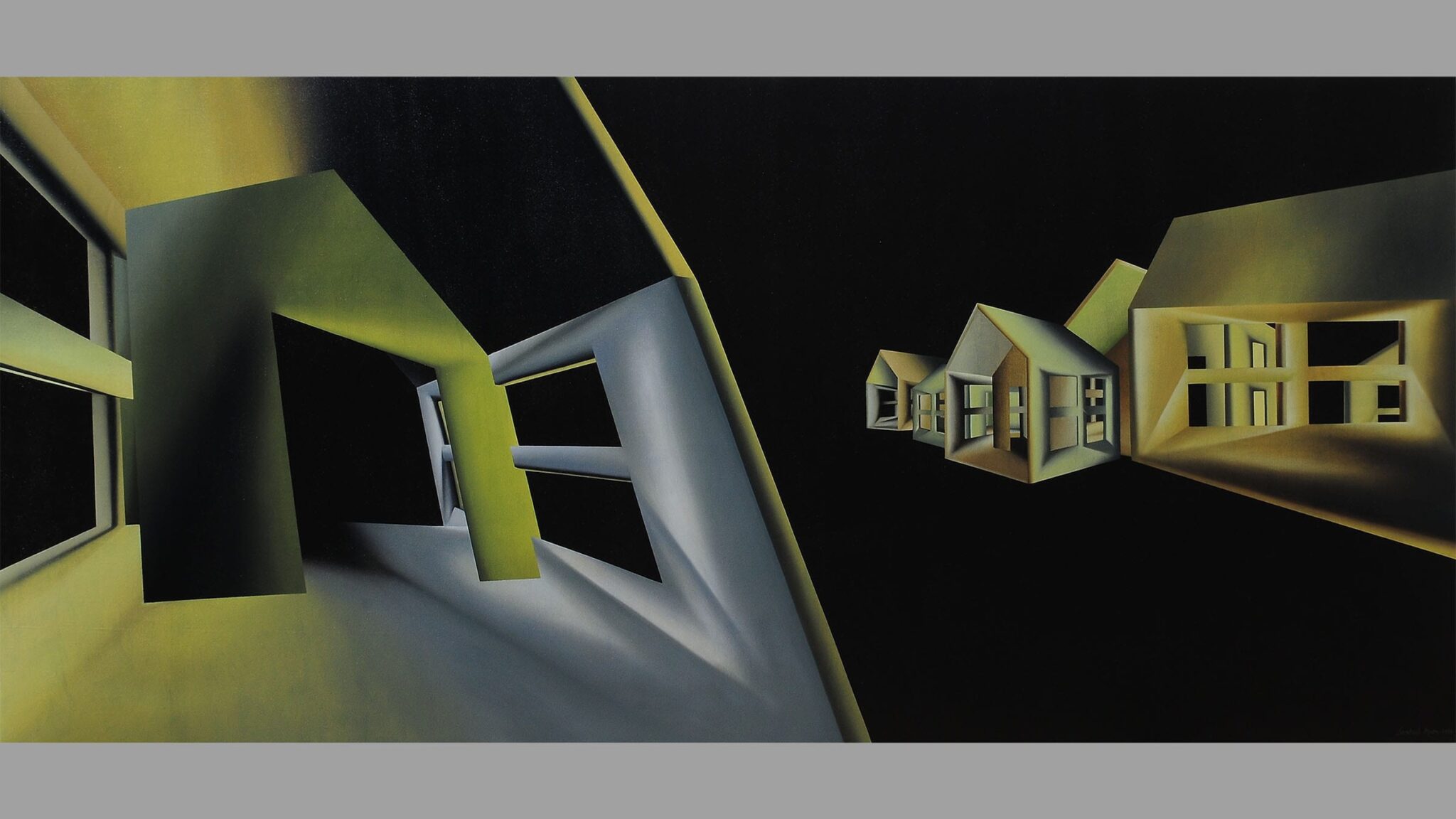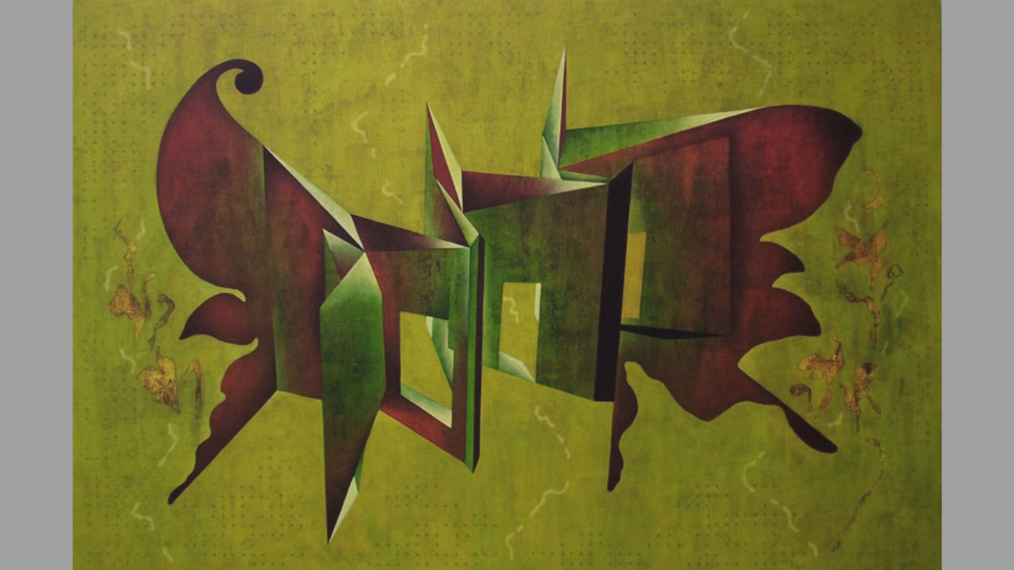 "Reinforced Illussions" सीरीज का यह पेंटिंग मुंबई टर्मिनस 1 -B के म्यूजियम का हिस्सा हैं.