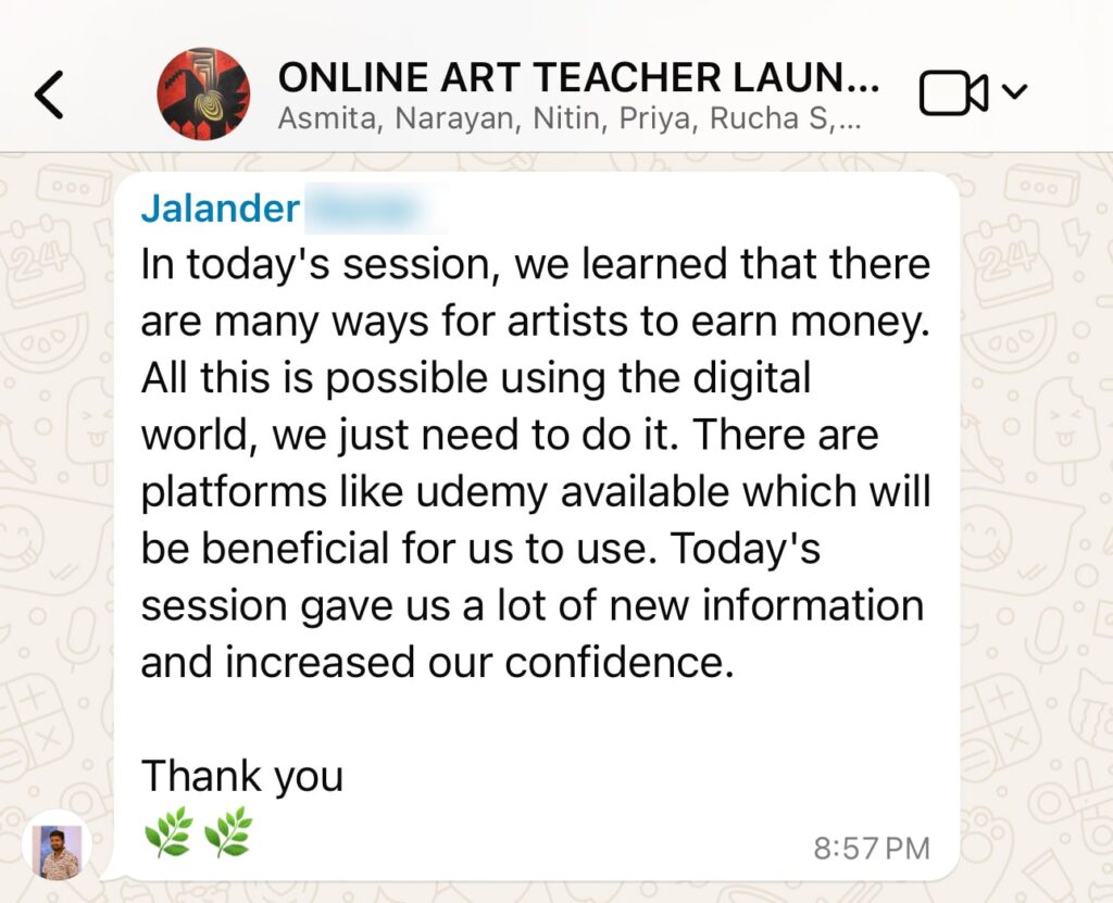 → सिर्फ Zoom, Canva, सोशियल मीडिया, WhatsApp के साथ पहला Paid Art Class शुरू करने की आसान SYSTEM.
