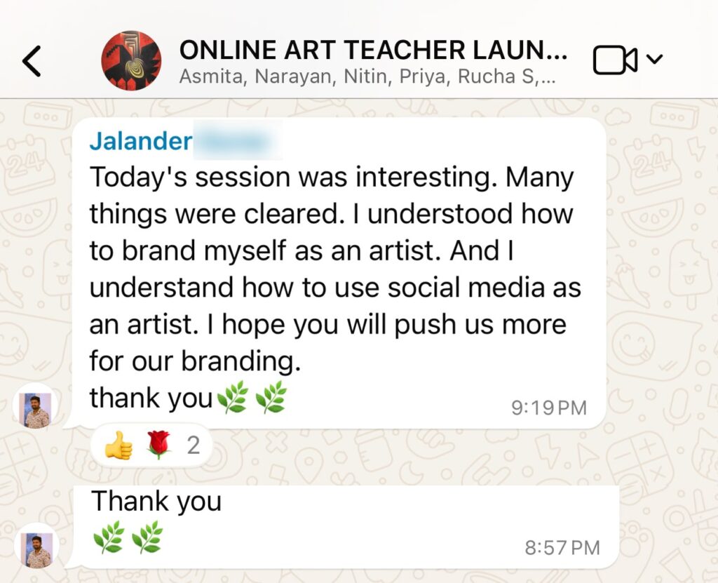 यह ३ घंटे का Live मास्टरक्लास आपको मदत करेगा – आपका पहला प्रोफेशनल पेड ऑनलाइन आर्ट क्लास Plan, Price और Promote करने के लिए ...